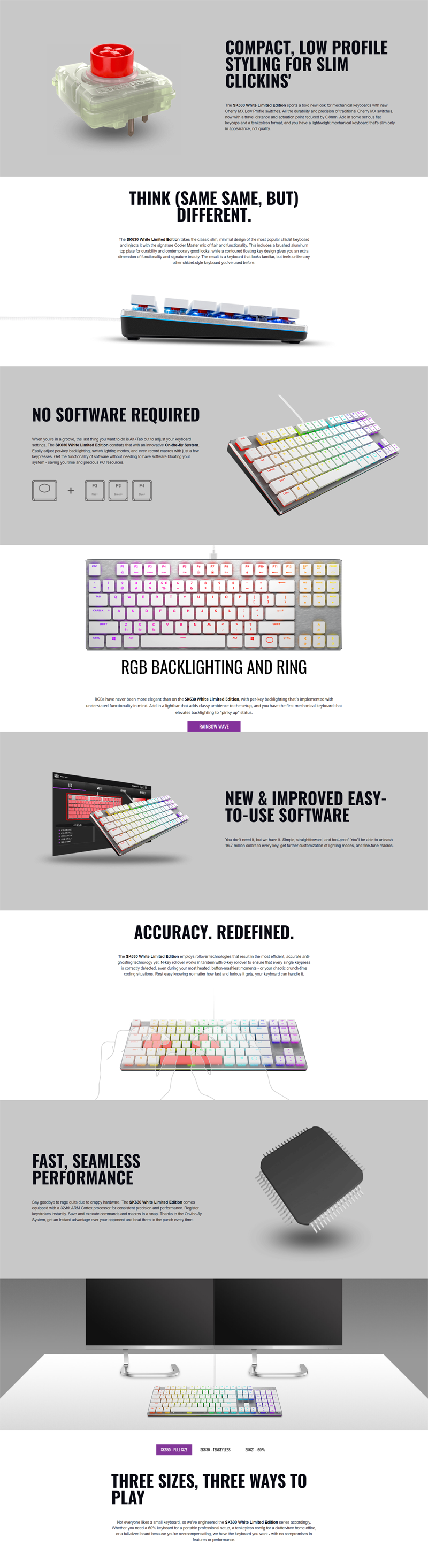 | Product Description | Cooler Master SK630 - White Limited Edition - keyboard - US - white, silver |