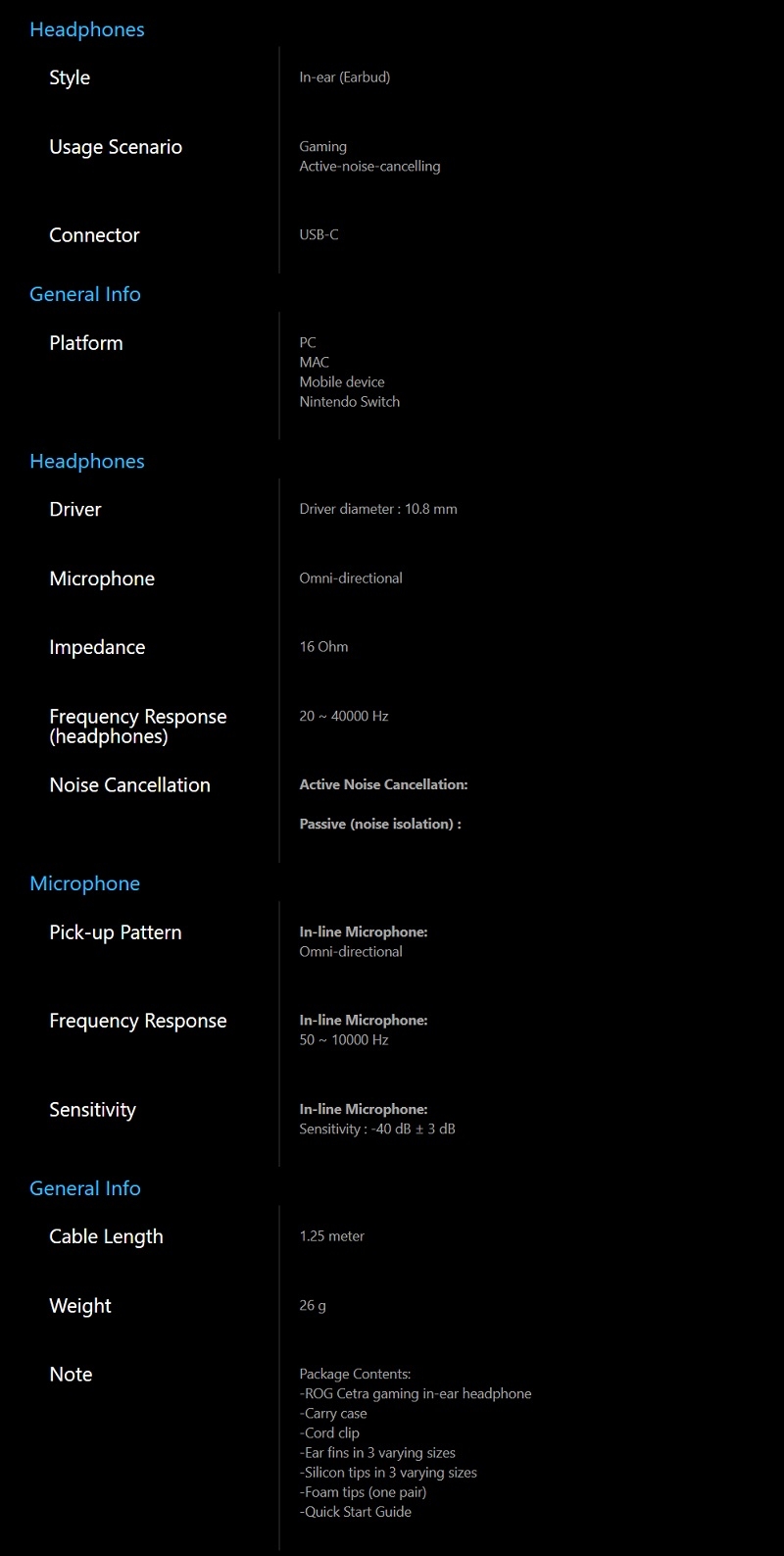 Asus ROG Cetra in-ear gaming headphones with Active Noise Cancellation (ROG-CETRA)