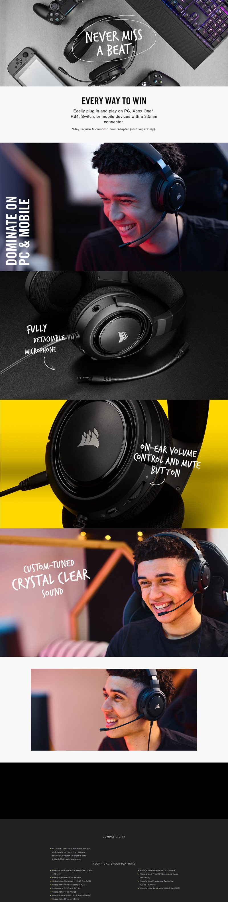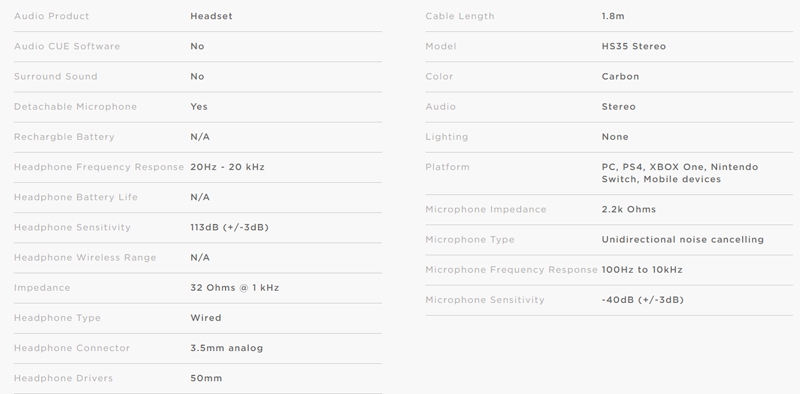 Corsair Hs35 Stereo Gaming Headset Discord Certified Clear Sound And Plush Memory Foam Carbon Ca-9011195-Ap