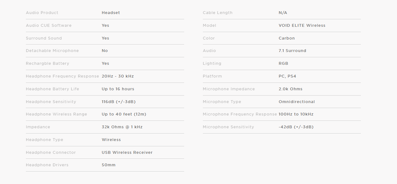 Corsair Void Elite Carbon Black Usb Wireless Premium Gaming Headset Ca-9011201-Ap