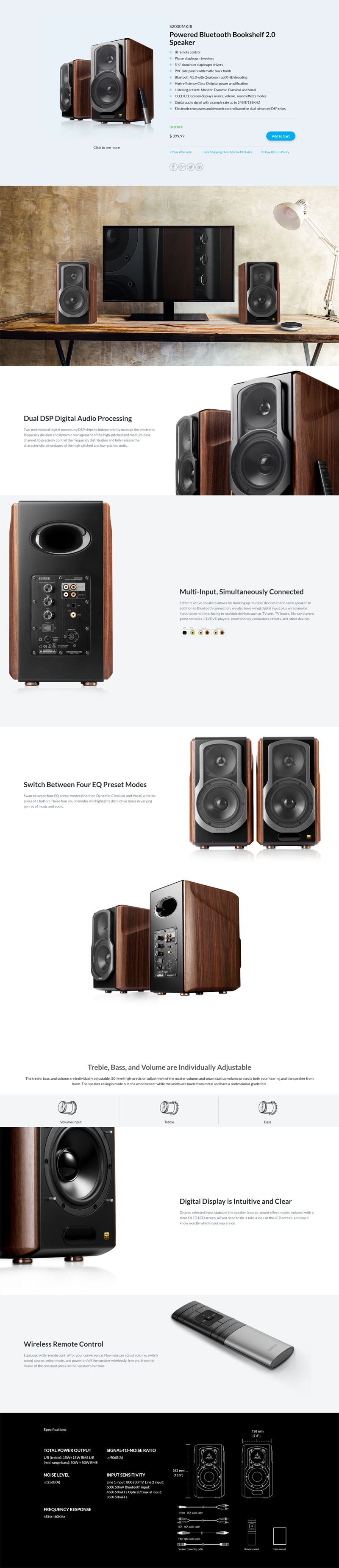 Edifier S2000MKIII 2.0 Lifestyle Active Bookshelf Bluetooth Studio Speakers - BT/AUX/Optical/Coaxial 124W RMS MDF Wood Panel