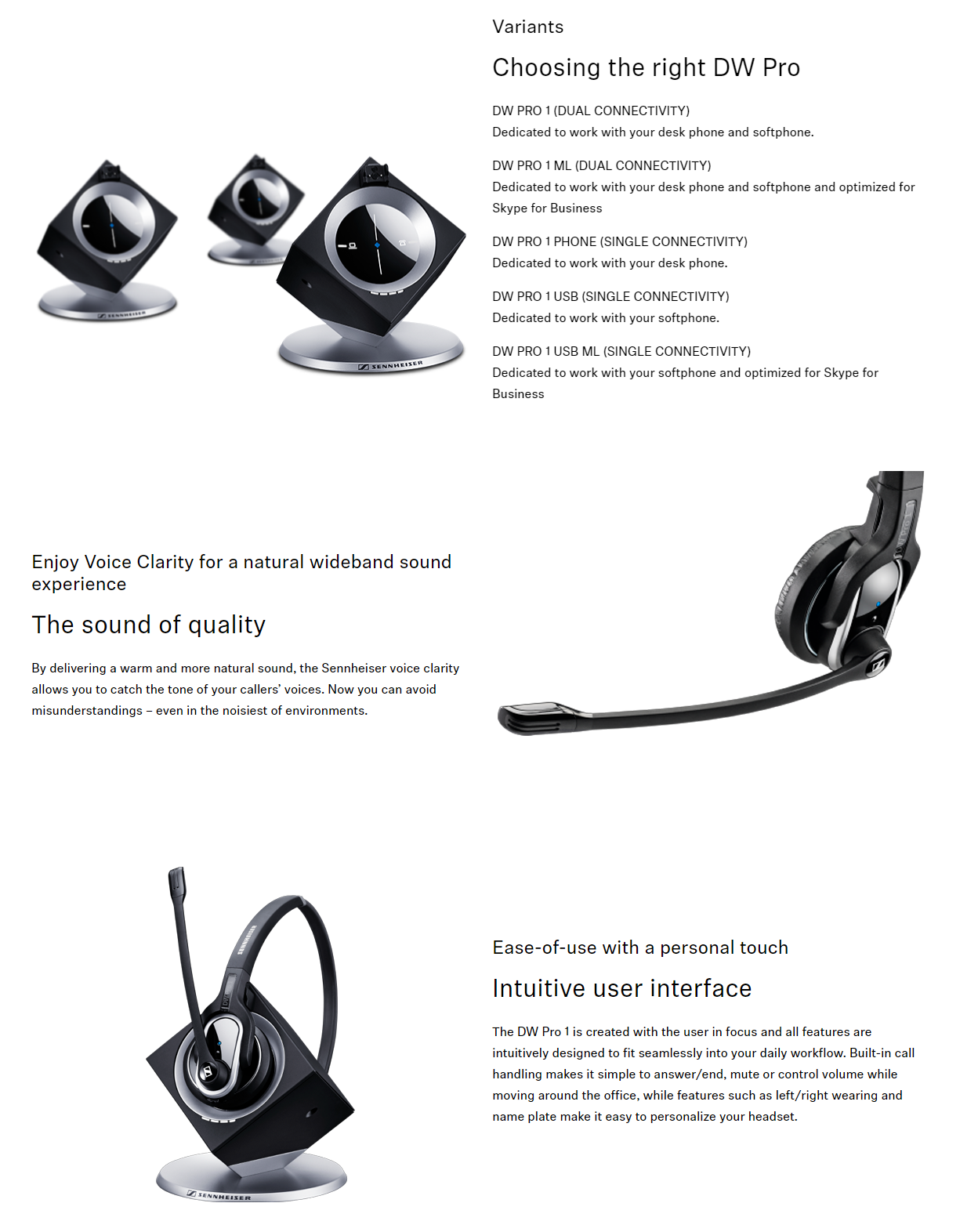 Sennheiser Dw Pro 1 Wireless Headset (Dw 20 Ml) (Dual Connectivity) - Desk Phone + Pc 12 Hour Talk Time 180M Wireless Range 2 Year Warranty 504461