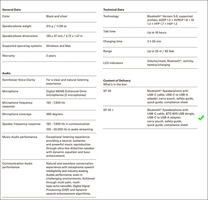 Sennheiser Sp30T Teams Wireless Speakerphone 08392