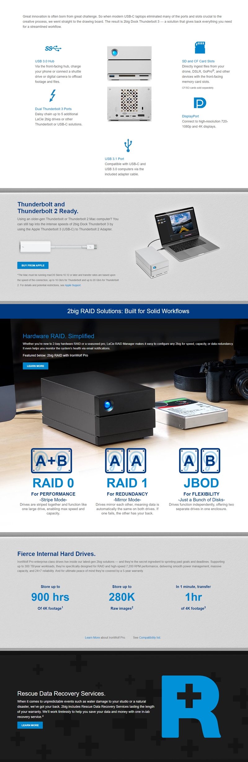 LACIE 2BIG RAID 4TB (2X2TB 7200RPM IRONWOLF PRO) USB-C, 5YR DATA RECOVERY SERVICE