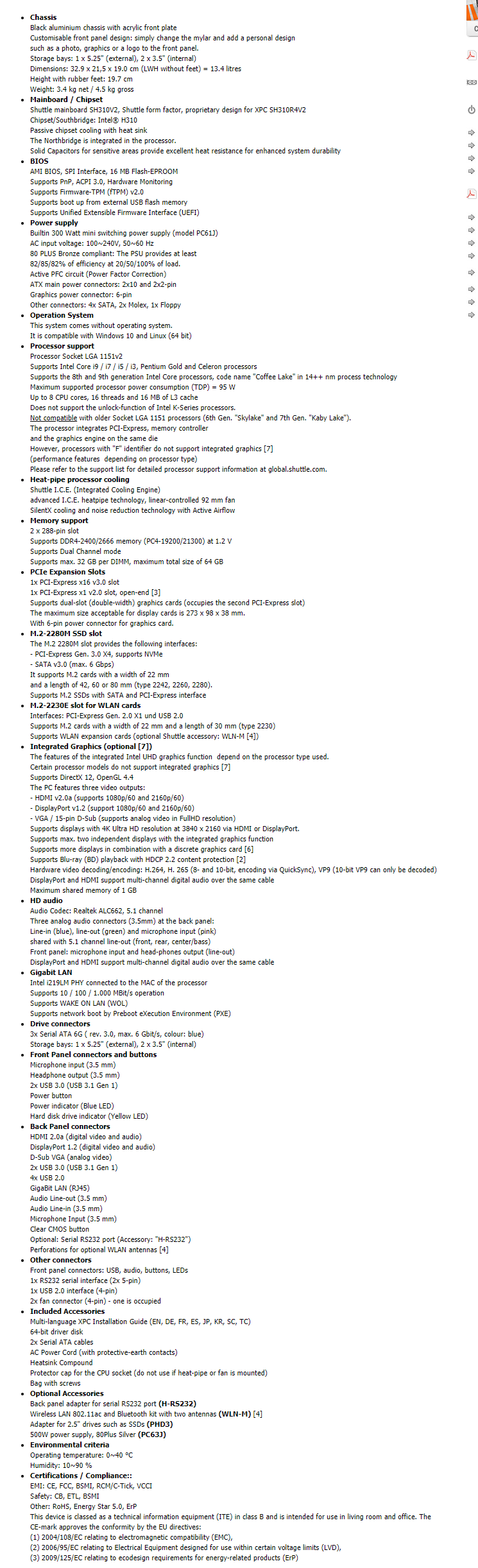 The Shuttle XPC cube Barebone SH310R4V2 supports the 8th and 9th