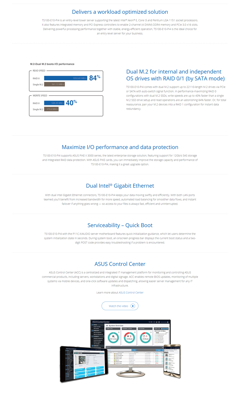 | Product Description | ASUS TS100-E10-PI4 - tower - no CPU - 0 GB |