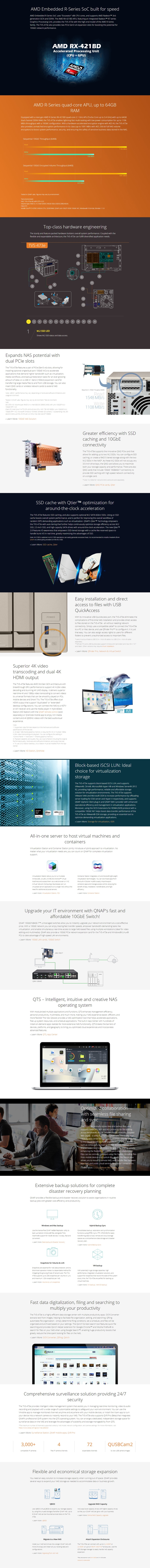 Qnap Tvs-473e-8g 4-bay Nas Amd Rx-421bd 2.1~3.4 Ghz 8gb Ddr4 Ram (max 64gb) 4x 2.5"/ 3.5" + 2x M.2 2280/ 2260 Sata 6gb/ S Slots 4x Gbe Lan 2y Wty Tvs-473e-8g