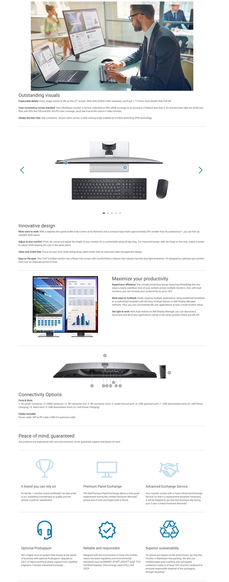 Dell U-series 27" (16:9) Ips Qhd 2560x1440 8ms Hdmi Dp Usb H/ Adj Srgb-99 3yr U2719d