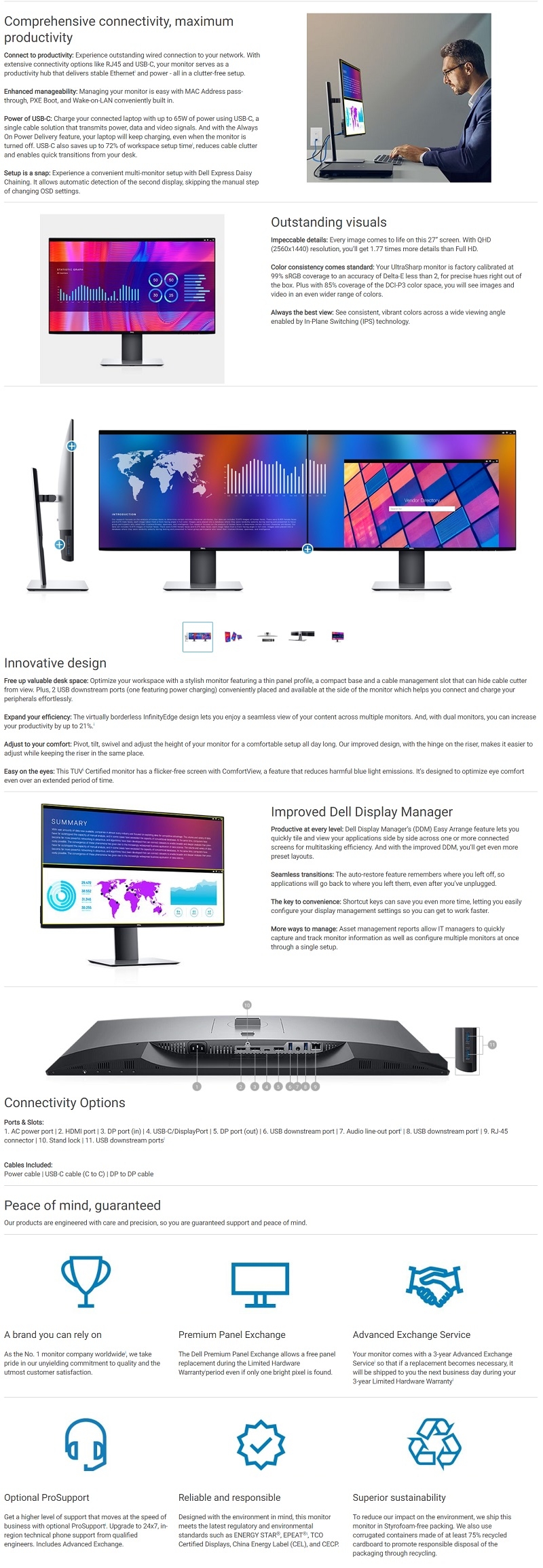 Dell UltraSharp USB-C Hub Monitor 27" (16:9) IPS QHD, 2560x1440, 8MS (U2721De)