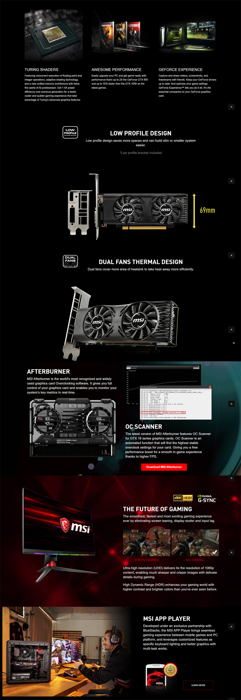 MSI Nvidia Geforce Gtx 1650 4Gt Lp Video Card