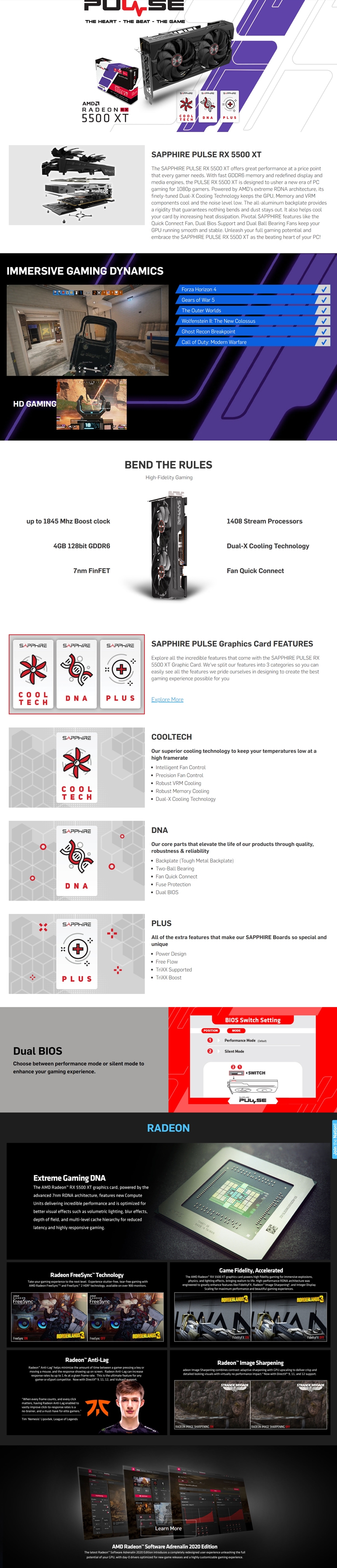 Sapphire Amd Pulse Radeon Rx 5500 Xt 4G Gddr6 Hdmi / Triple Dp Oc W/ Bp (Uefi) Lite 11295-03-20G