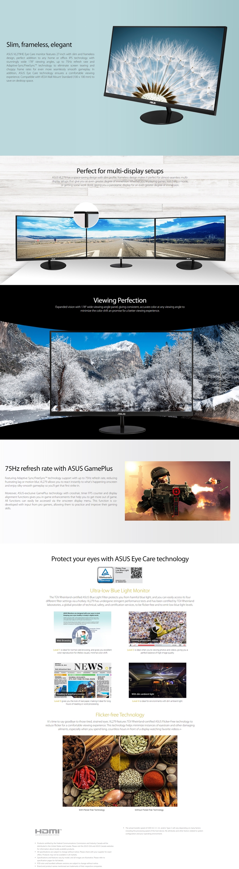 ASUS 27" Monitor: Ips Led (16:9) Fhd 1920X1080 5Ms Hdmi/Vga Freesync Frameless Tilt Black Vl279He