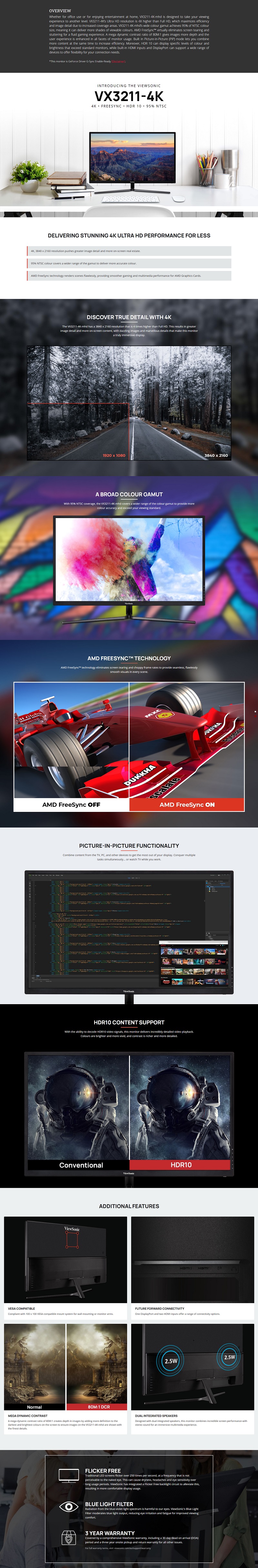 Viewsonic 32" 4K Monitor with Wide Colour Gamut and FreeSync (VX3211-4K)