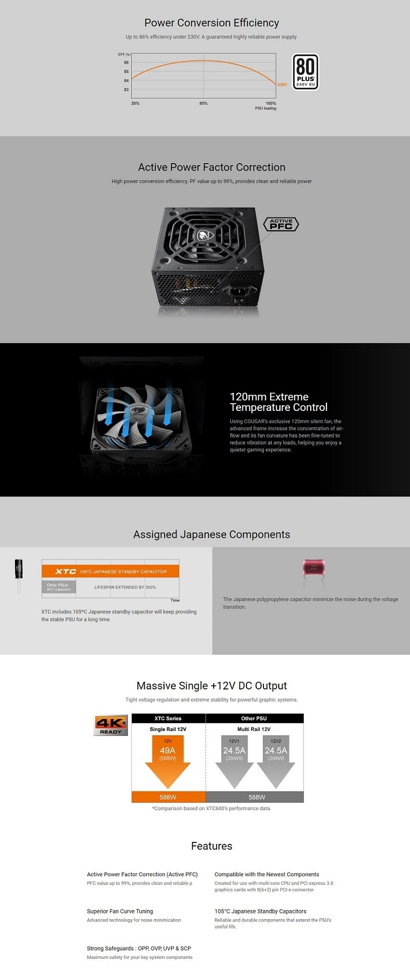 Cougar XTC600 PSU: 600W 80+ Power Supply (XTC600)