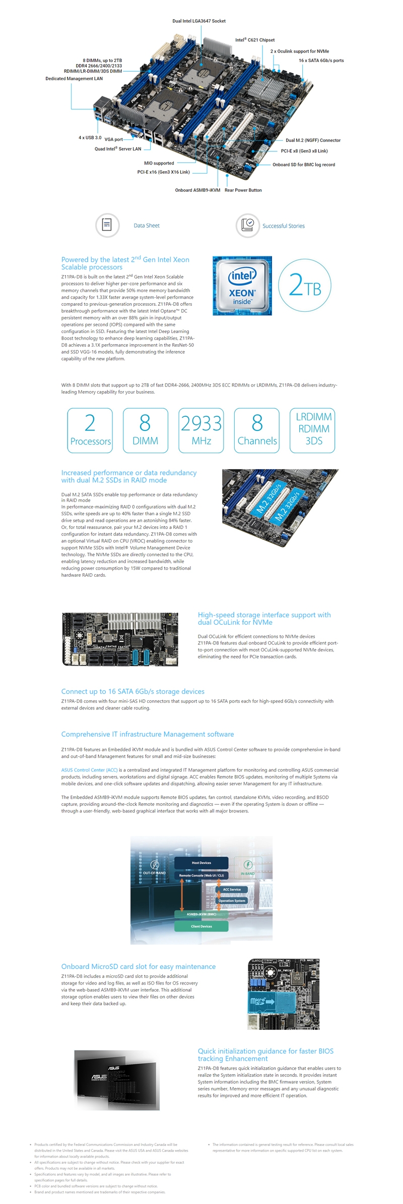 Asus Z11Pa-D8 Server Motherboard Lga 3647 C621 Ddr4 Ecc Reg Dimm (0/ 8) Ceb 3Yr Wty Z11Pa-D8